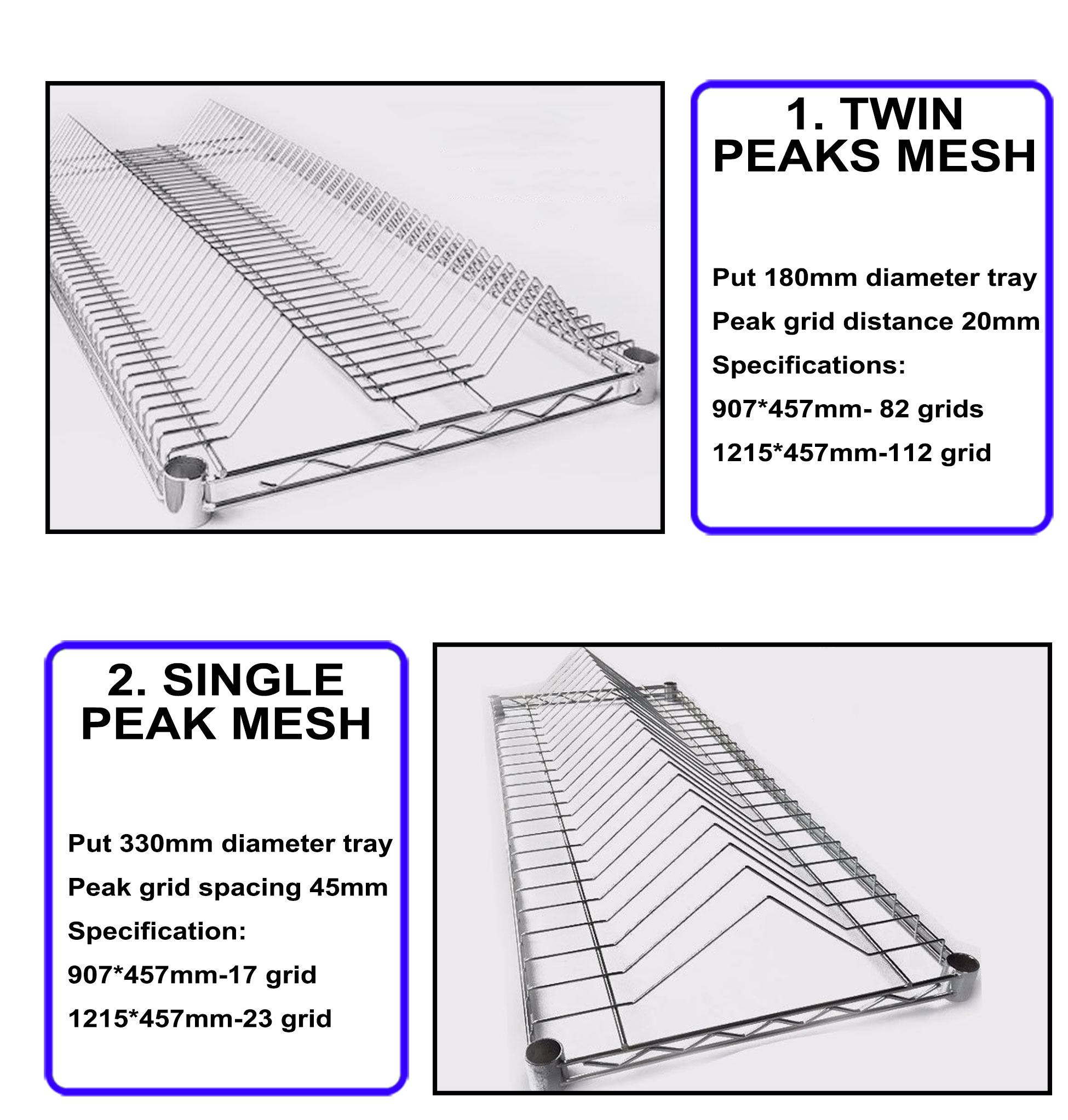 Wire shelf made of carbon steel,stainless steel.The diameter of wire rod is according to the international criteria: Φ6.0mm, Φ4.5mm, Φ3.5mm.